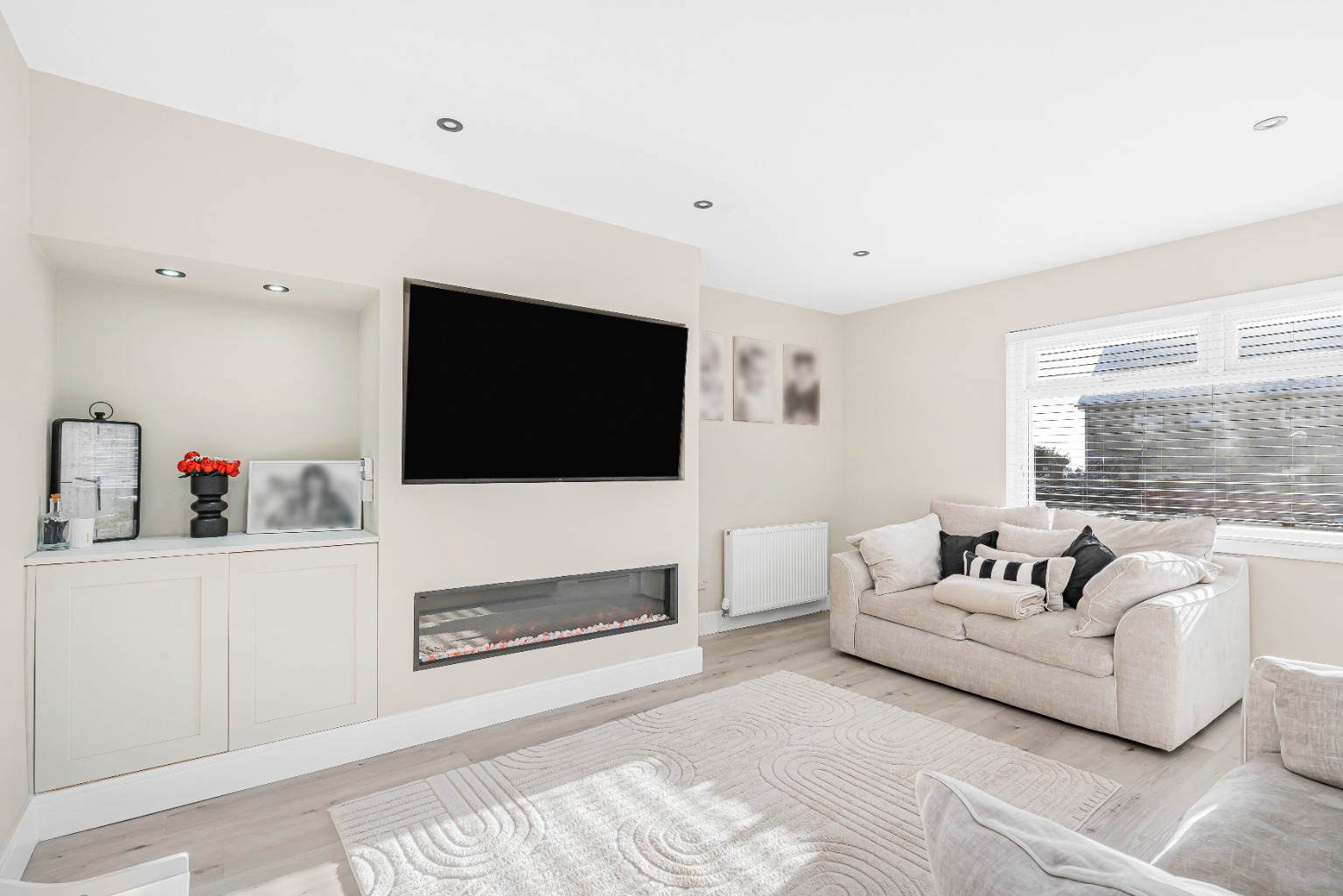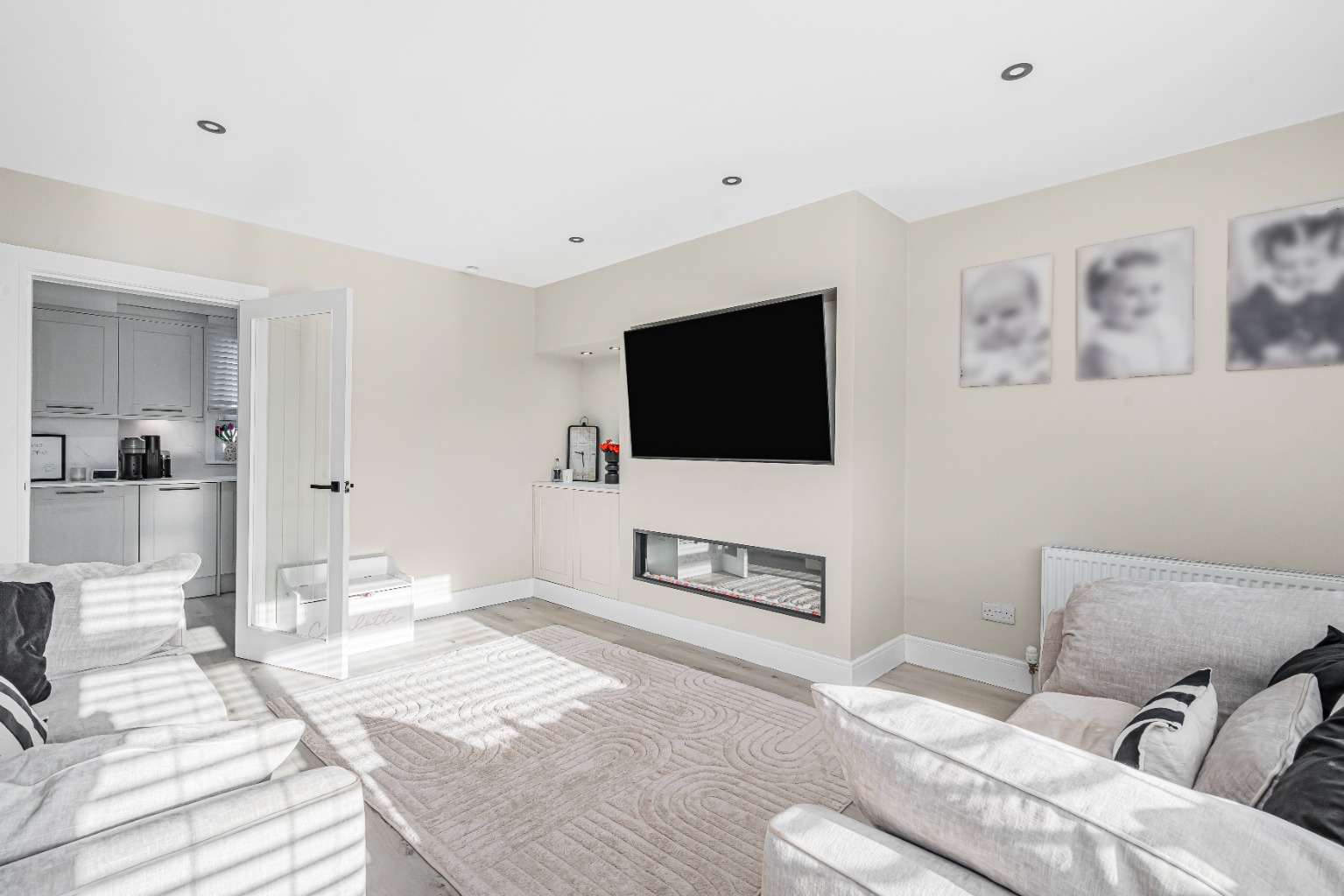 Adjacent to the lounge is the modern kitchen, a beautifully appointed space designed with both aesthetics and practicality in mind. Featuring contemporary cabinetry, ample worktop surfaces, and integrated appliances, it offers an ideal environment for culinary pursuits. The layout is efficient, making meal preparation a pleasure, and there is sufficient space for a dining area, perfect for informal family meals.